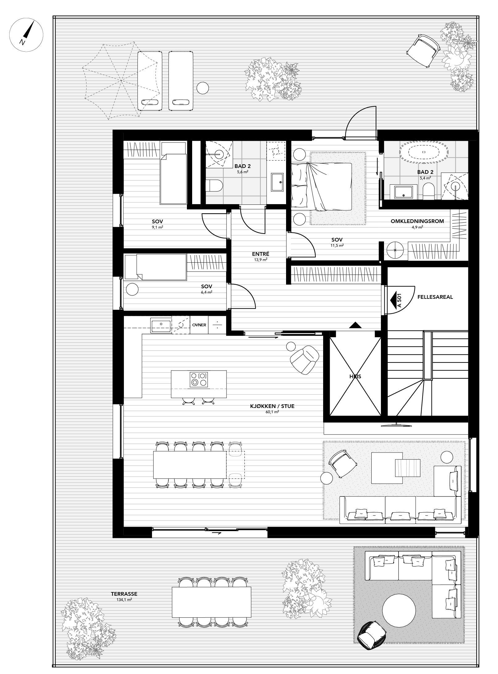 Utsøkt 4-roms toppleilighet med hele 134 kvm takterrasse hvor du kan nyte solen og utsikten hele dagen. Leiligheten har direkte adkomst med heis, 2 pent flislagt bad, hvor det ene er tilknyttet hovedsoverommet, åpen stue/kjøkken løsning på totalt 60 kvm med store vindusflater som gir godt med lysinnslipp og fremhever den fantastiske utsikten.