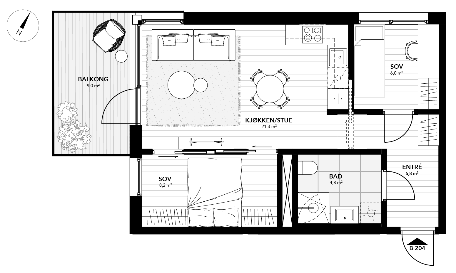 Meget fin 3-roms leilighet med sørvest solrik balkong på 9 kvm. Leiligheten inneholder entre med god plass til garderobe, pent flislagt bad, 2 soverom samt en åpen stue/kjøkken løsning hvor kjøkkenet ligger skjermet til.