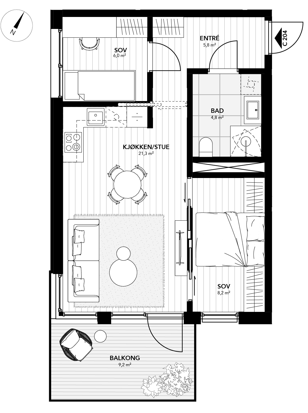 Smart 3-roms leilighet med solrik balkong på 11,7 kvm som er sørvendt. Leiligheten inneholder en romslige entre, 2 flotte soverom, pent flislagt bad og åpen stue/kjøkken løsning.