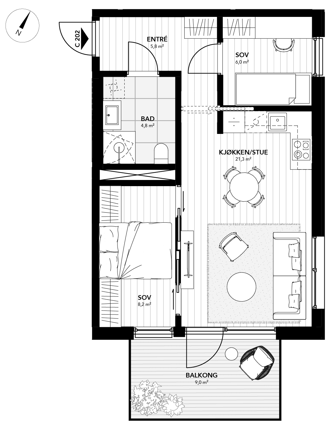 Smart 3-roms leilighet med solrik balkong på 11,7 kvm som er sørvendt. Leiligheten inneholder en romslige entre, 2 flotte soverom, pent flislagt bad og åpen stue/kjøkken løsning.