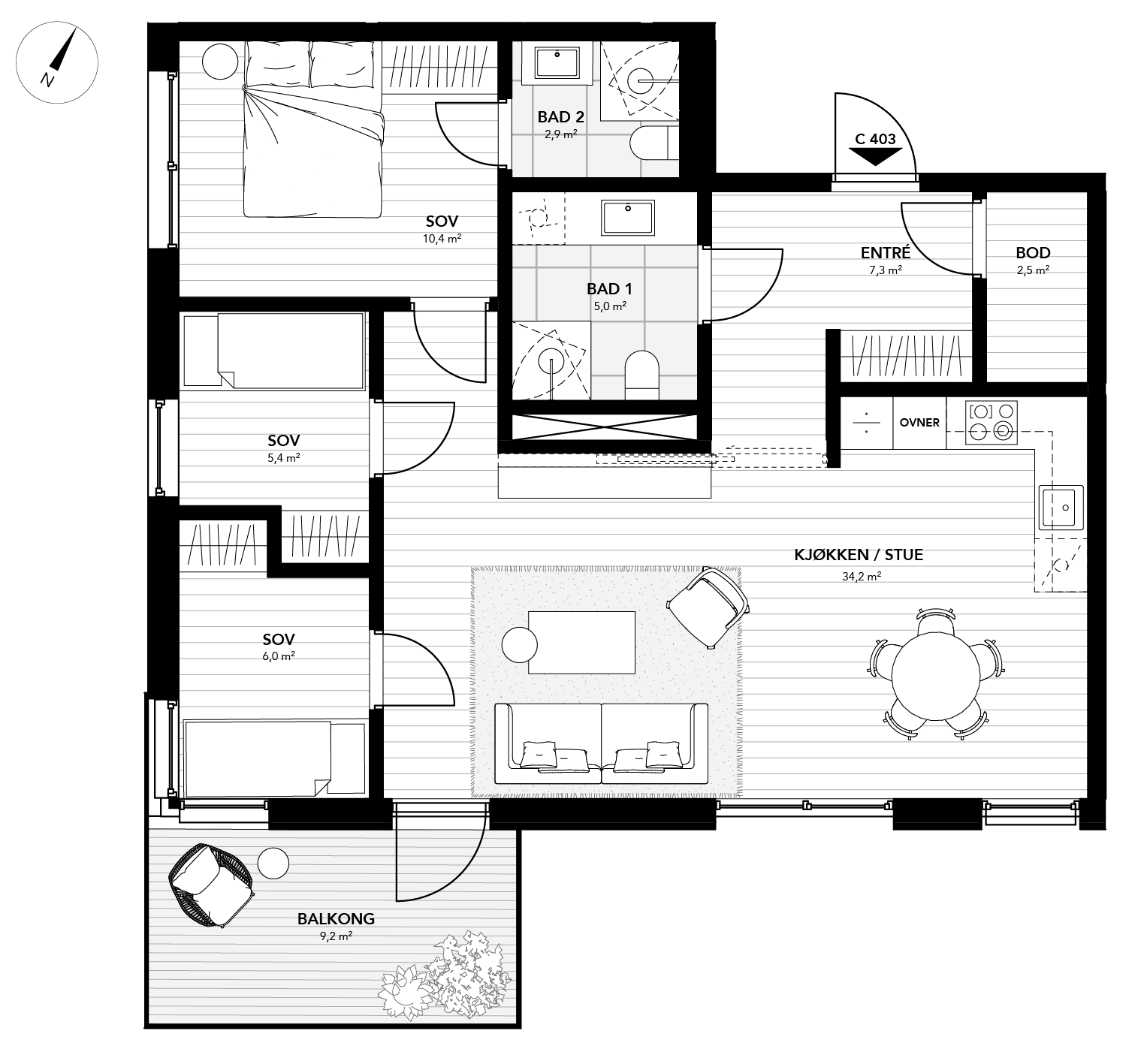 Innholdsrik 4-roms leilighet med sørvendt balkong på 9 kvm hvor du kan nyte en flott utsikt og gode solforhold. Leiligheten inneholder en romslig gang med inngang til en praktisk bod. 3 flotte soverom, 2 pent flislagt bad og en åpen stue/kjøkken løsning på 34 kvm.
