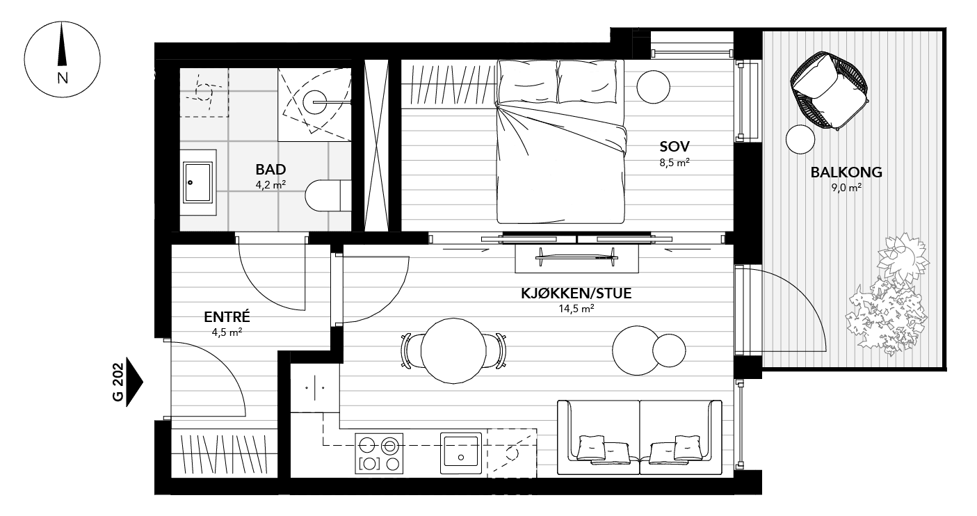 Arealeffektiv 2-roms der man har plass til det man trenger. Se på den gode planløsningen!