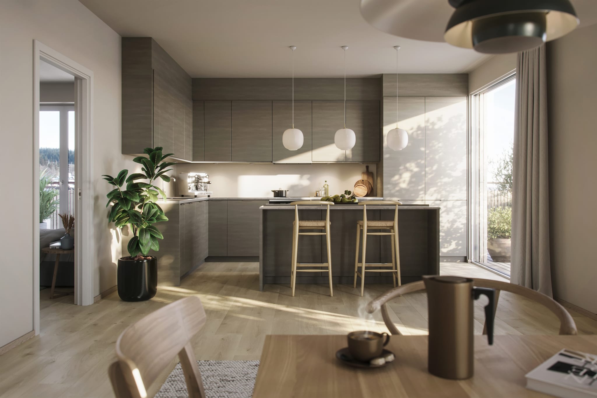 Dette er standard leveranse på Steinan Park. Fargepaletten til  interiørkonsept består av lune jordtoner som er med på å skape en rolig balanse i boligen din.