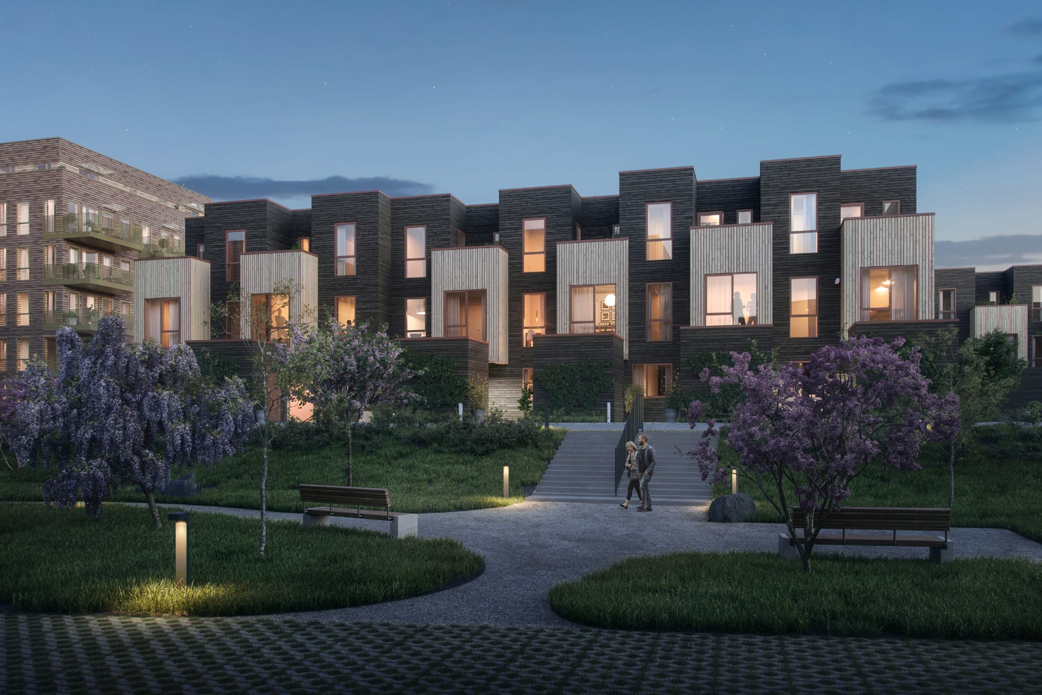 I rekkehusene på Steinan Park varer sola lenge. Ettermiddagene også. De er sørvestvendt og ligger lyst og lunt til, og rett ovenfor har du Estenstadmarka. Her får du både privat hage og store, frodige grøntområder rett utenfor. Rekkehus oppføres sjelden, men nå bygges det 22 av dem her.